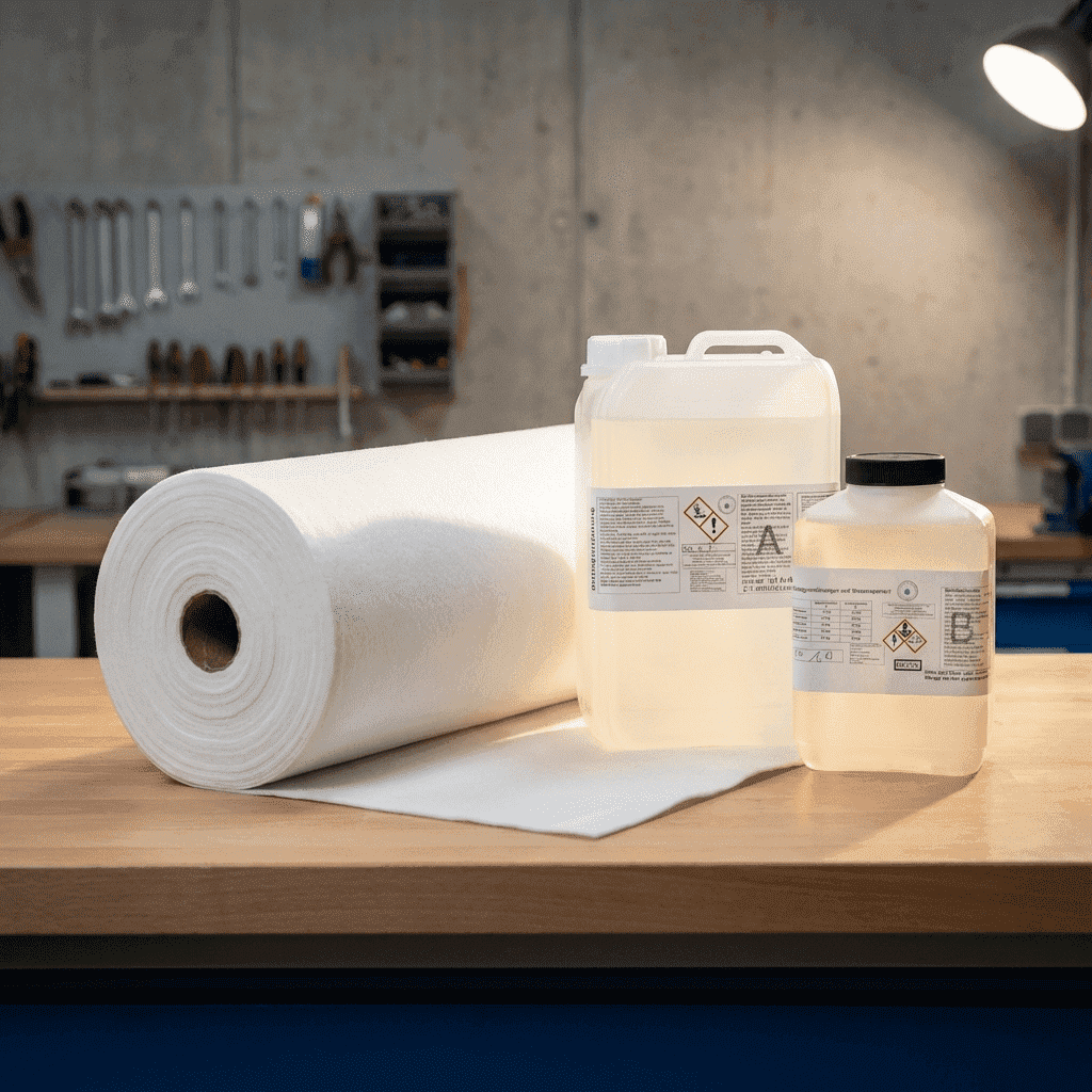 - Gesamtverbrauch Harz: ca. 400–600 g/m² für Grundierung + Vlies + Deckschicht
