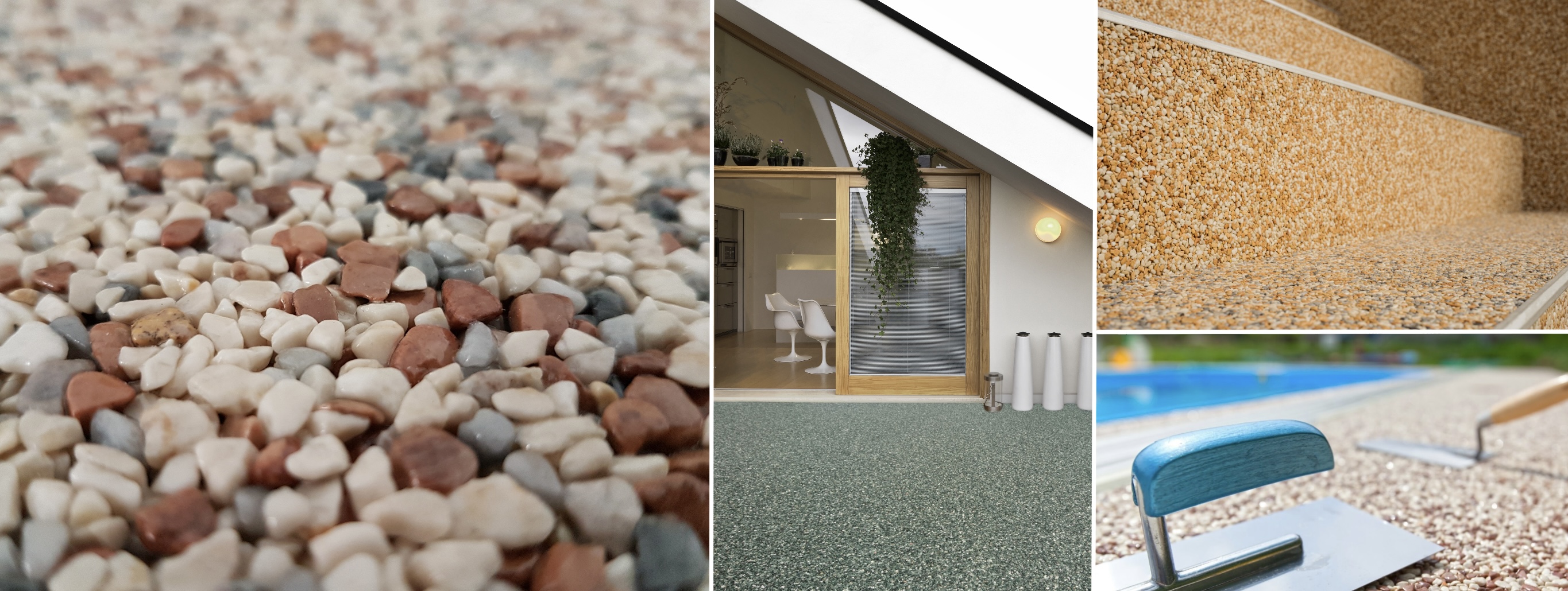 Ob Wohnraum, Terrasse oder Gewerbefläche – unser Steinteppich vereint ansprechende Optik, hohe Belastbarkeit und einfache Pflege. Durch die lösemittelfreie Zusammensetzung eignet sich das System ideal für den Innenbereich und lässt sich gleichzeitig problemlos im Außenbereich einsetzen.