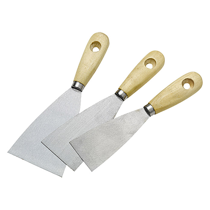 Ein Praktischer Spachtel mit stabilem Holzgriff und Blatt aus Werkzeugstahl - ein Must Have für jeden Heimwerker und Profi! In verschiedenen Größen oder als Bundle erhältlich.
