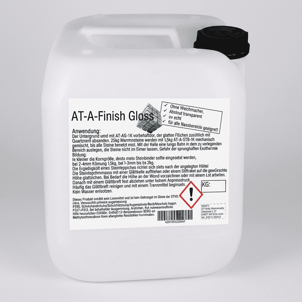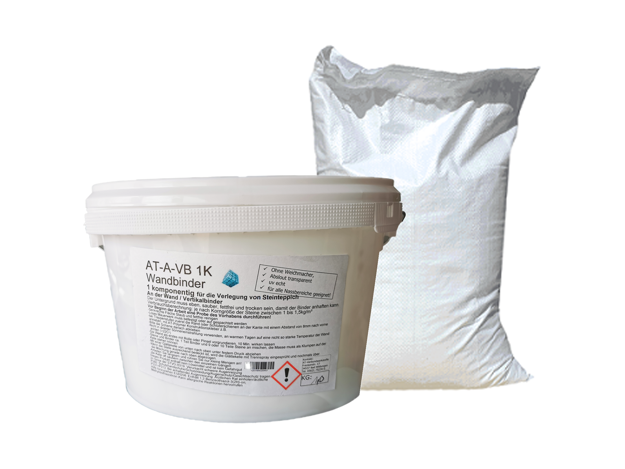 Steinteppich-Binder für vertikale / senkrechte Flächen wie Wand, Wandsockel, Sockelleisten, Treppen Setzstufen etc. 1K Harz Beschichtung für den Außen- und Innenbereich / einfache Verarbeitung / UV-beständig